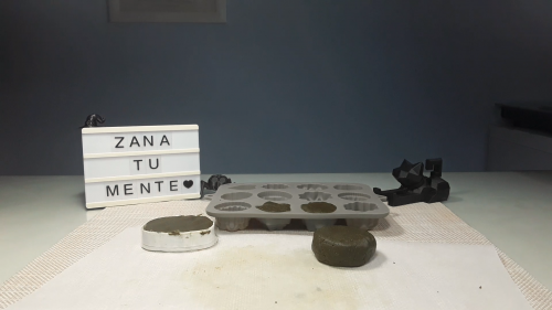 Podemos sacarlo del recipiente para trabajar con las manos. Una vez moldeado, y que no se quiebre, podemos darle forma con la mano o usar moldes. Dejamos un par de horas que se endurezca y podemos sacarlo del molde. Aún así quizás pueden secarse un poco más así que lo ideal es dejarlo al menos un día que termine de endurecerse.