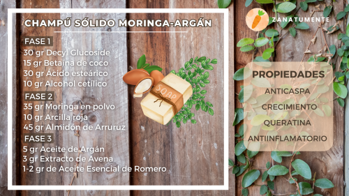 Limpia, calma y también regenera. Por otro lado reduce la grasa ya que es absorbente. Además va a portar a nuestro champú un tacto más sedoso. Puedes usar otro tipo de almidón.