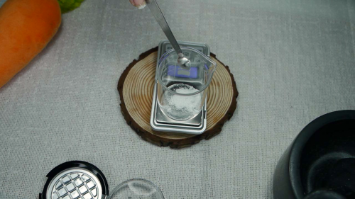 Primero pesamos el óxido de zinc, el almidón y la arcilla blanca. Luego agregamos un poco de pigmento a nuestro gusto. Y lo ideal sería llevar todos los polvos a un mortero o molinillo para mezcla y moler muy bien. Aquí veremos si el color es el deseado o agregamos más pigmentos.