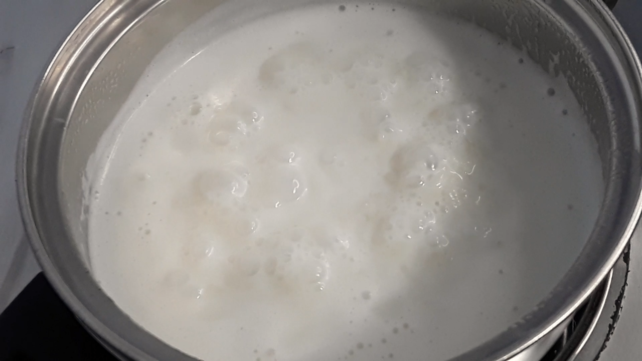 Primero vamos a usar medio vaso de arroz, que lavaremos muy bien en agua. Una vez lavado, vamos a añadirlo a una olla con el doble de agua, es decir un vaso. Y además le vamos a añadir media taza de leche, yo usé semidesnatada de vaca, pero podéis usar una vegetal perfectamente. La de avena combinaría muy bien con el arroz. Todo esto lo llevamos a ebullición. Una vez alcanzada la ebullición, bajamo el fuego hasta que se evapore parte del líquido.
