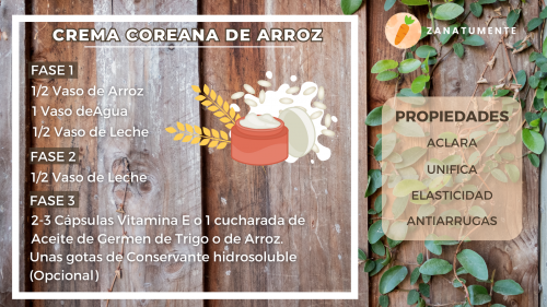 Y con este arroz vamos a hacer una crema/mascarilla “coreana”. Y es que esta crema tan casera y fácil tiene grandes propiedades. Dicen que esta crema de arroz te deja la piel de porcelana, y por eso es un producto estrella en la rutina de belleza de las coreanas. El arroz contiene vitaminas como la niacinamida o vitamina B3 que ayuda a aclarar las manchas solares o de acné, a unificar el tono y reducir las arrugas.