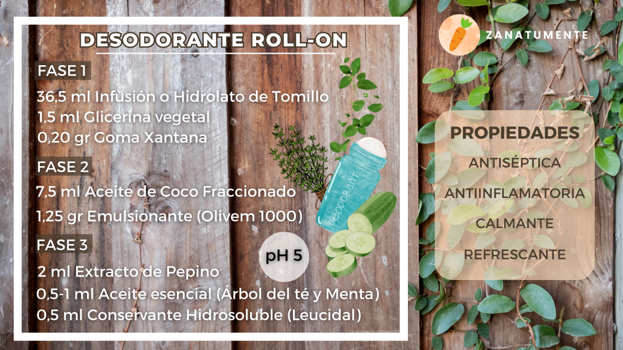 Receta de Desodorante Roll-on Natural de Pepino y Tomillo