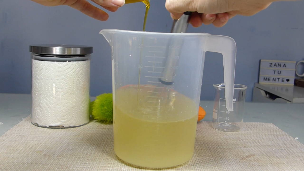 Luego le incorporamos los aceites y aceites esenciales. Mezclamos todo homogéneamente.