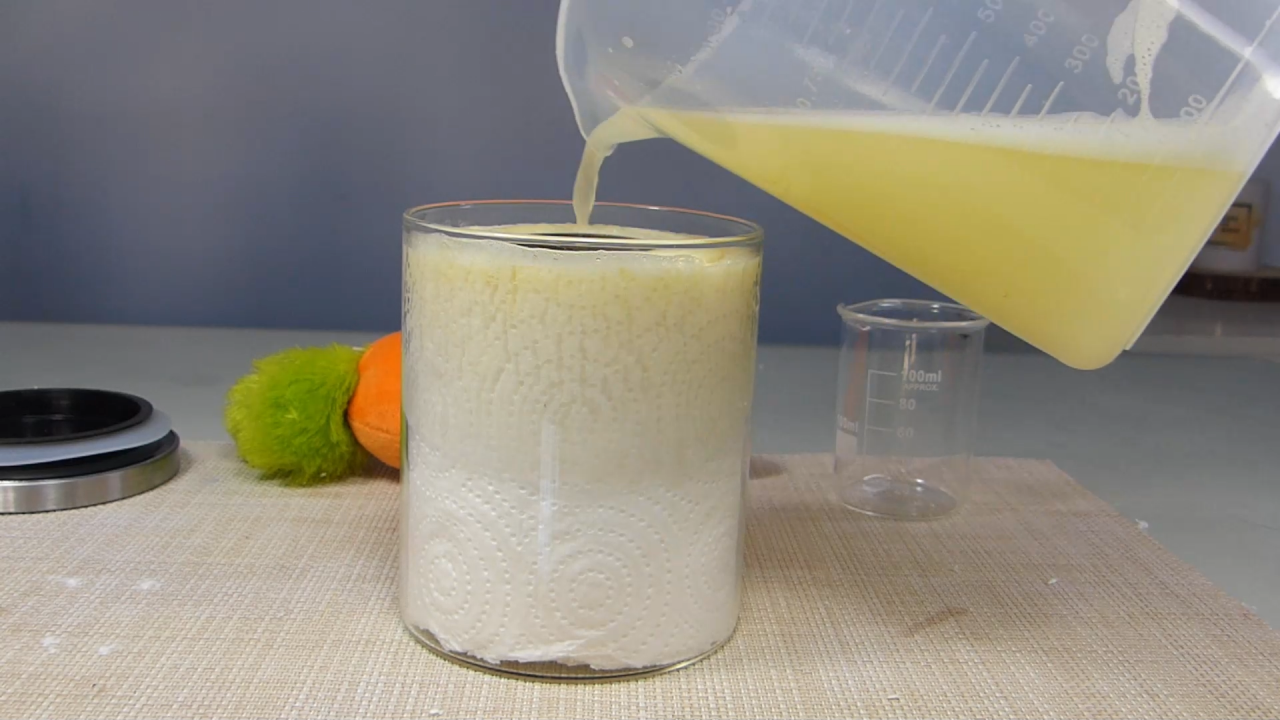 Una vez mezclado todo, coloca el rollo de servilletas en el recipiente y vierte la mezcla líquida sobre las servilletas hasta que estén bien empapadas. Cierra el recipiente y deja reposar durante unos minutos para que las servilletas absorban la solución. Ve añadiendo más líquido si crees que es necesario. Al rato, lo que no se absorba se quedará al fondo y podremos verterlo en el recipiente donde hemos hecho la elaboración. El líquido que nos sobra podemos guardardarlo en un recipiente hermético y nos puede durar unos meses para volver a hacer toallitas.